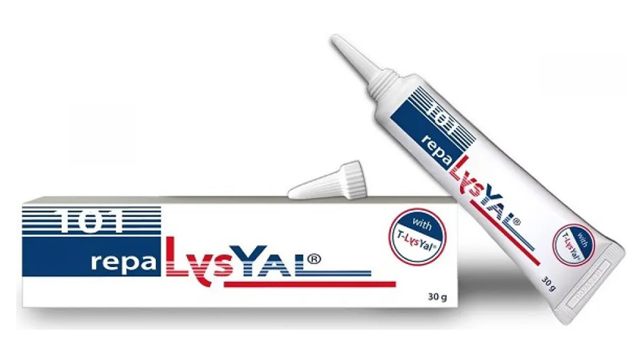 repalysYal® es una crema para uso tópico que contiene T-LysYal®, un agregado supramolecular compuesto por Ácido Hialurónico, Lisina, Timina y Cloruro de Sodio capaz, con una hidrodinámica propia, de actuar sobre las estructuras de la dermis y el epitelio cutáneo modulando el proceso inflamación y reparación de lesiones dermoepidérmicas, previniendo y obteniendo un tejido cicatricial remodelado y menos fibrótico. La consecuencia de su gran hidratación es la capacidad de reactivar los procesos regenerativos a nivel celular.